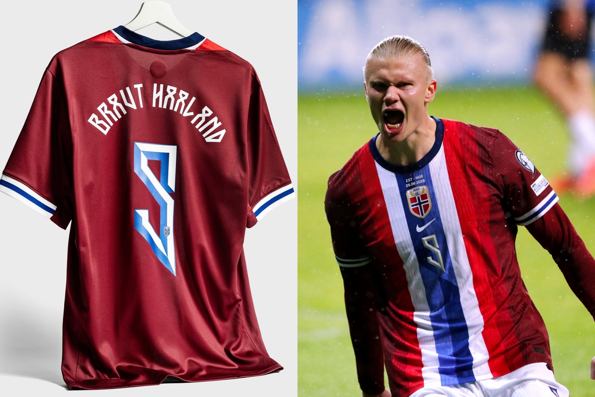 这意味着,从即日起,他的球衣背面将印上“布劳特-哈兰德”(Braut Haaland),而非此前单一的“哈兰德”。印有新姓名的国家队球衣已正式发售,并配以"挪威新篇章"的宣传语。